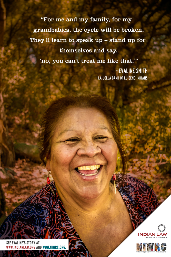 EVALINE SMITH, a member of the La Jolla Band of Luiseño Indians in California, has experienced abuse, addiction, and run-ins with the law, but now she’s a survivor who is learning to heal and help others avoid domestic violence, which she says is not a Native tradition.