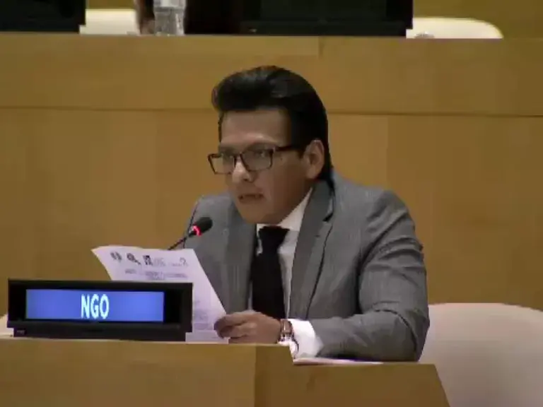 Leonardo Crippa, senior attorney of the Center, presents a joint statement to the Economic and Social Council (ECOSOC).