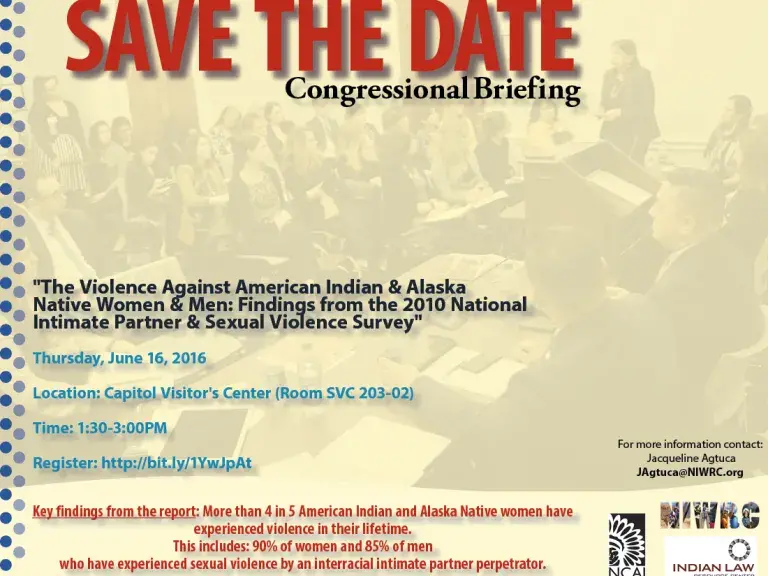 On June 16, the National Indigenous Women’s Resource Center, Indian Law Resource Center, and National Congress of American Indians will be holding a congressional briefing to inform lawmakers about these and other findings and to better understand VAWA 2013 in the context of the NIJ report.