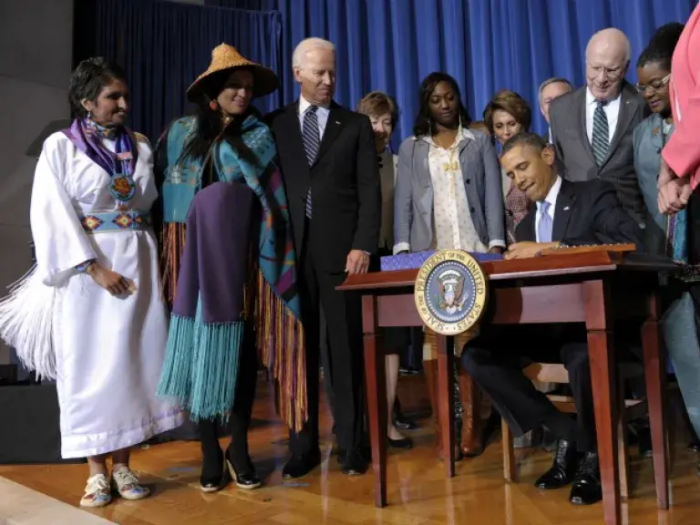 More than 500 hard-fought days after Violence Against Women Act expired, both houses of Congress finally passed S. 47 by a strong bipartisan vote. On March 7, 2013, joined by Native and other women’s advocates, survivors, tribal leaders, federal officials, and lawmakers, President Obama signed into law the Violence Against Women Reauthorization Act of 2013 (VAWA 2013).