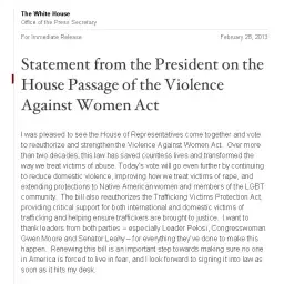 Rapid Reactions to House Passing of Violence Against Women Act Read