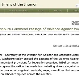 Salazar, Washburn Commend Passage of Violence Against Women Act